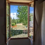 从房间可以欣赏花园风景. Beautifully Renovated Farmhouse With Private Pool别墅提供2间浴室.它们都设有步入式淋浴间,分开的洗手间 和浴缸.